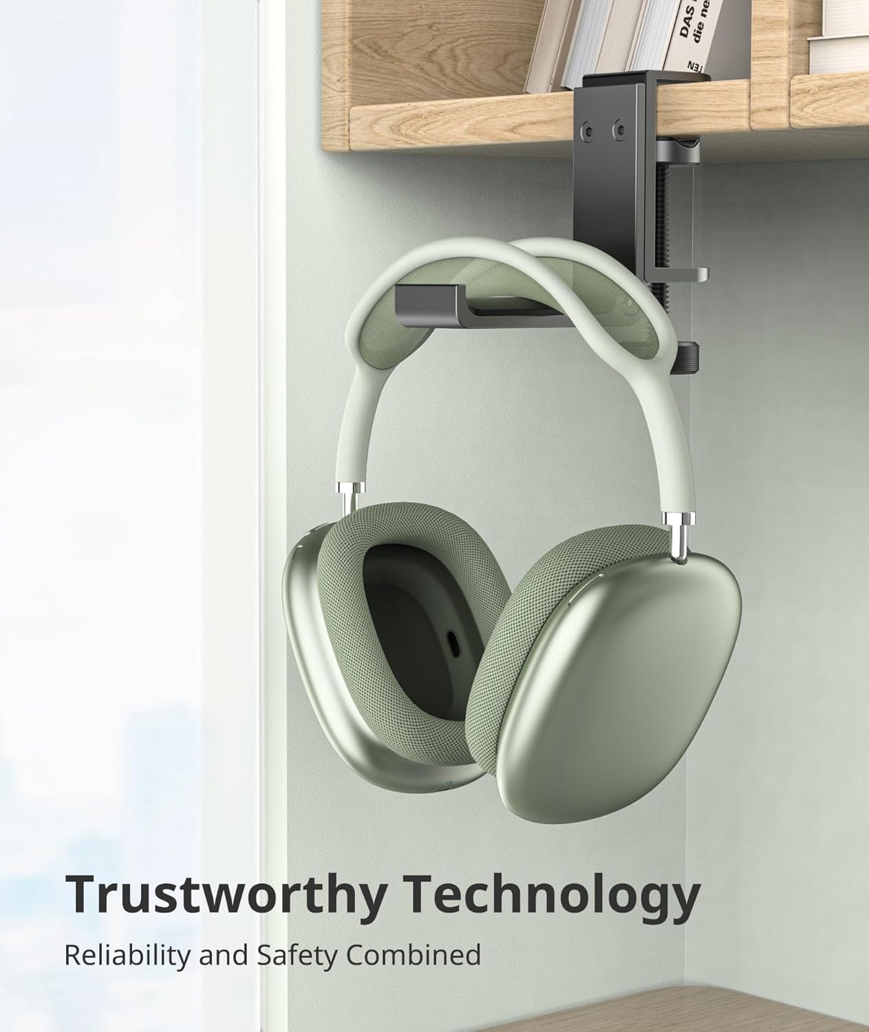 Crafted from aluminum alloy, this stand folds flat for easy storage. The clamp fits desks 0.2 to 1.8 inches thick. Weight is 0.5 pounds. Extended size is 6.7 x 4.3 inches. Soft silicone rubber protects the headset from scratches. Screw clamp ensures a secure, wobble-free mount. Holds up to 10 kg (22 pounds) as rated. Portable design allows you to take it to LAN parties, coffee shops, or coworking spaces. Great for gamers on the go.